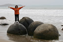 הנקודה הבאה הייתה מו-אראקי (Moeraki), מפרצון נחמד שכמה סירות דייג עוגנות במימיו שכל כך אופייני לאי הדרומי. מדרונות ירוקים שלא נגמרים ורועות בהן כבשים (13 מיליון בערך), פרות, לאמות, סוסים וארנבות.